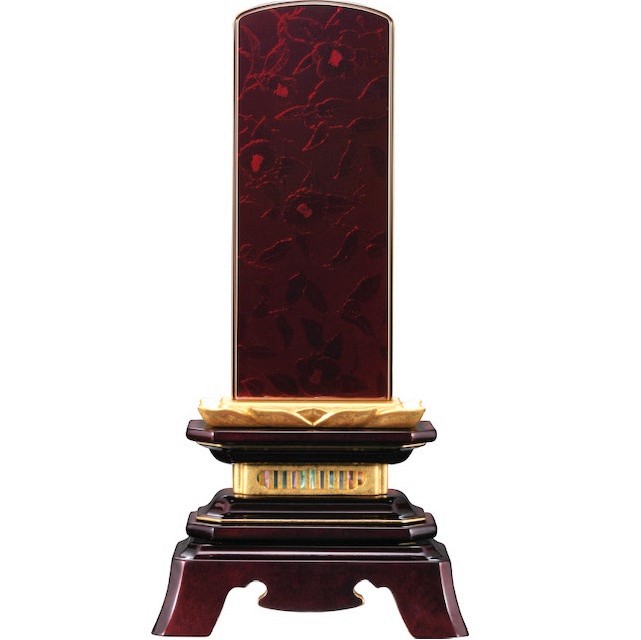 椿地紋蒔絵位牌