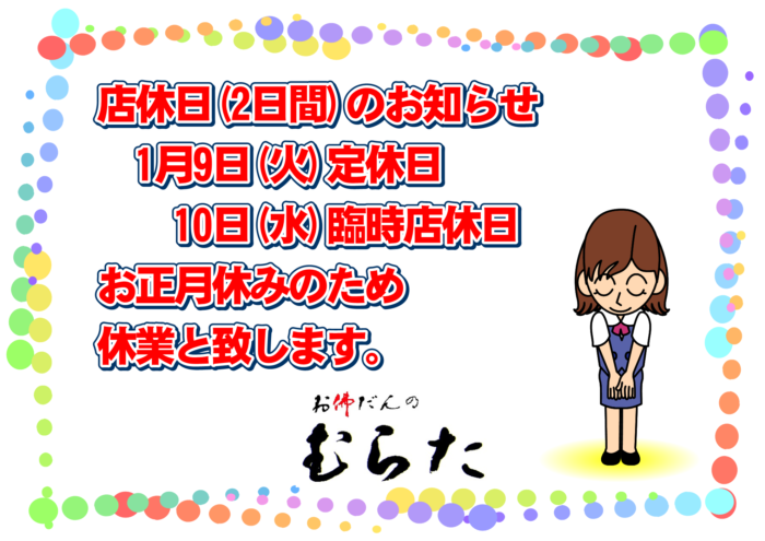お佛だんのむらた 令和6年お正月休み